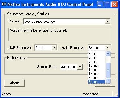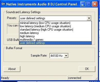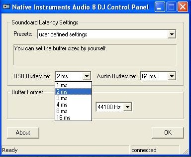 Ce paramètre est le mien (USB Buffersize 2 ms / Audio buffersize 6 ms