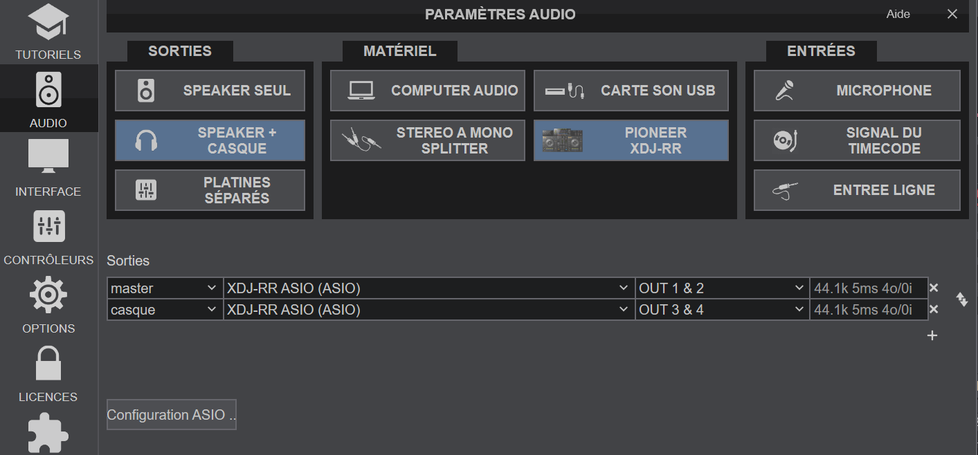 Le paramétrage audio est configuré par défaut