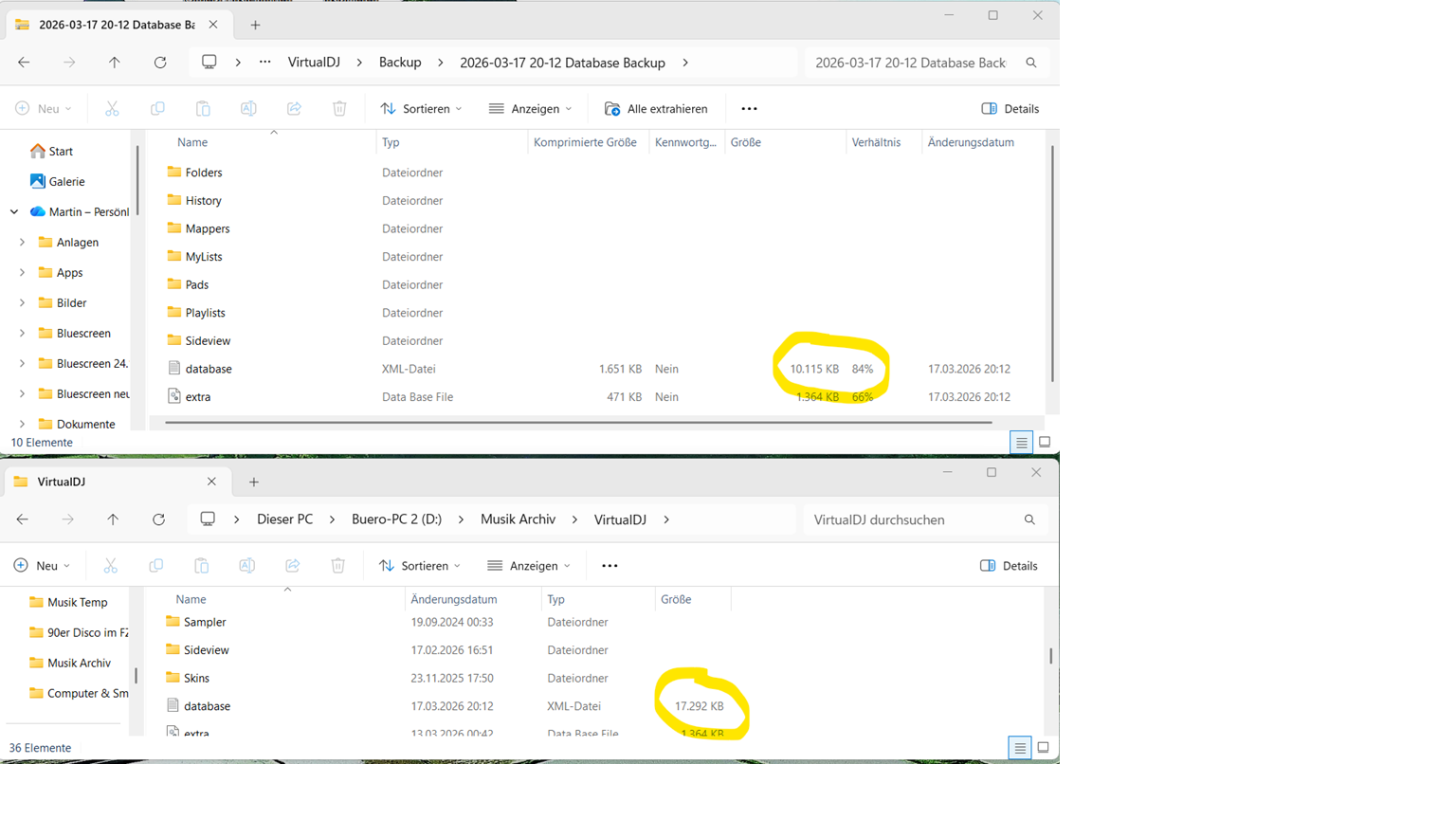 Wenn ich ein aktuelles Backup erstelle hat sie nur 10 MB. Nicht komprimiert!