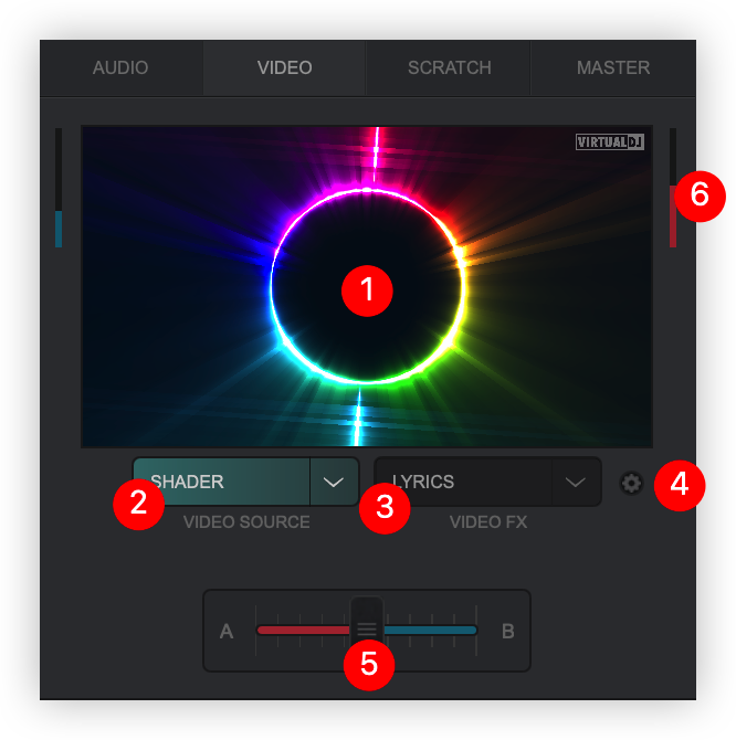 For a complete list of effects, transitions and visualizations included in VirtualDJ, please see the List of Native Effects. - VIDEO OUTPUT MENU. The Video Output Menu provides useful tools to customize the layout and video experience for both you and the audience. The Simple Video menu provides the base options, while the Dual-Source Mixing menu provides additional advanced options: