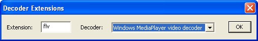 dans extension et tu écris flv et dans Decoder tu choisis Windows mediaplayer video decoder