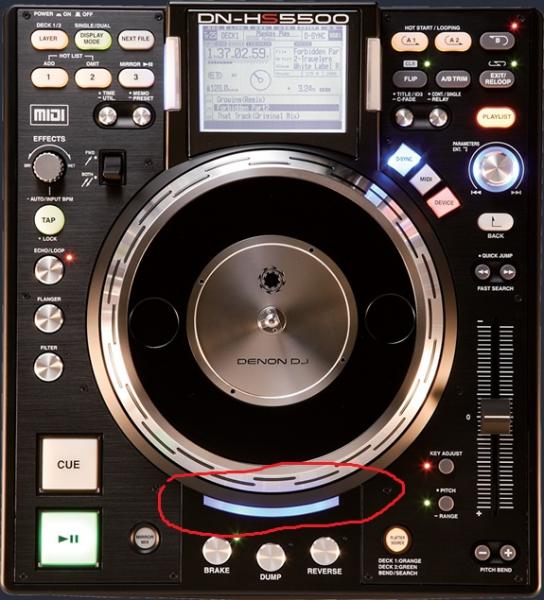 ps le led bleu se trouve juste en haut des boutons brake dump reverse de la denon .