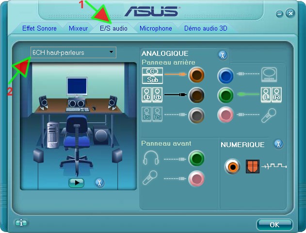 Carte son: 4.1 card --> sélectionne la carte son du pc