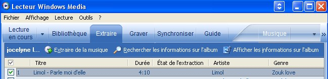 Quand j'extrais un CD Dans la colonne titre il n'y a que le titre... et je dois y ajouter le chanteur dans la colonne titre comme cela apparait pour toi.