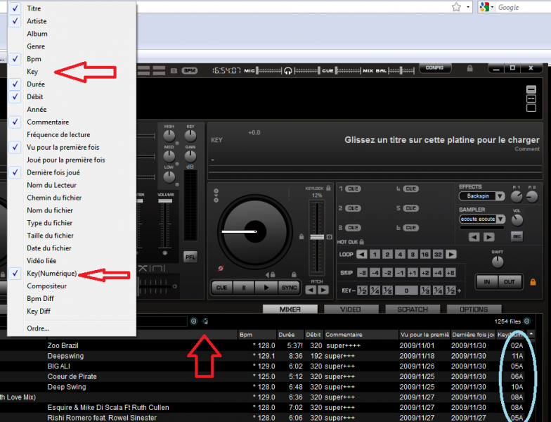 fais un clic droit sur la barre "titre, artiste, etc.." et le menu deroulant apparait (comme sur le screen)