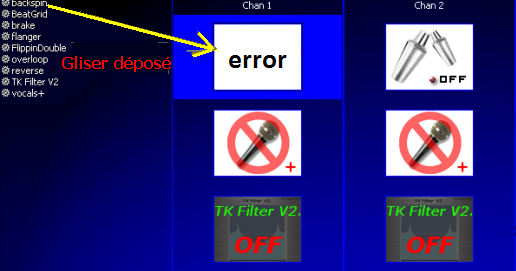 si l'effet n'est pas compatible avec ton vdj il est marqué error dans le slot que tu a selectionné en faisant glissé depuis vdj ;)
