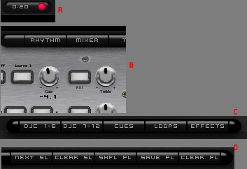 les deux barres de boutons sur les cotés sont desactivée, elle serviront pour modifier les vues laterales (loop, cue, video, ...)