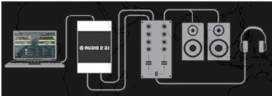 Exemple de branchement avec cette carte son audio 2 DJ