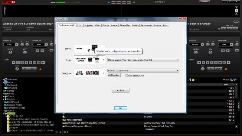 comme ca ne marchait toujours pas top top tout ca, j'ai tout recommencé a zero de chez zero, j'ai formaté mon ordi, tout remis a jour, reinstallé vdj et asio driver de chez denon, et ... toujours les memes soucis, soit ca bug quand je lance vdj, et je dois forcer l'appli a quitter, soit ca va mais aucune des 2 platines ne repond. au lancement du logiciel il me dit dans les 2 cas: pas assez de voies, et , erreur d'asio. j'ai pourtant telechargé le dernier driver asio sur le site denon, mes platines sont a jour, tout comme VDJ....