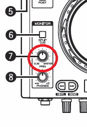 Down left on the controller in the monitor-section there's a Cue-mix knob (Pan). Fully counter-clockwise turned you will only hear the Cue-signal. If you turn it clockwise, the Master-signal comes in.