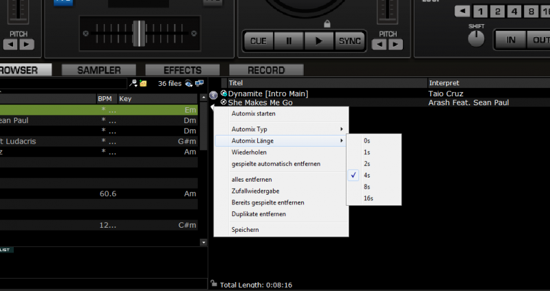 Bei VDJ heisst das Automix. Es findet aber nicht, wie bei BPM Studio auf beiden Playern statt, sondern im rechten Fenster des Dateibrowsers.