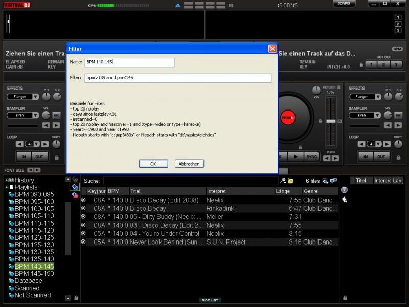 Mach dir am besten noch Filterfolder mit den BPM Z.B So: