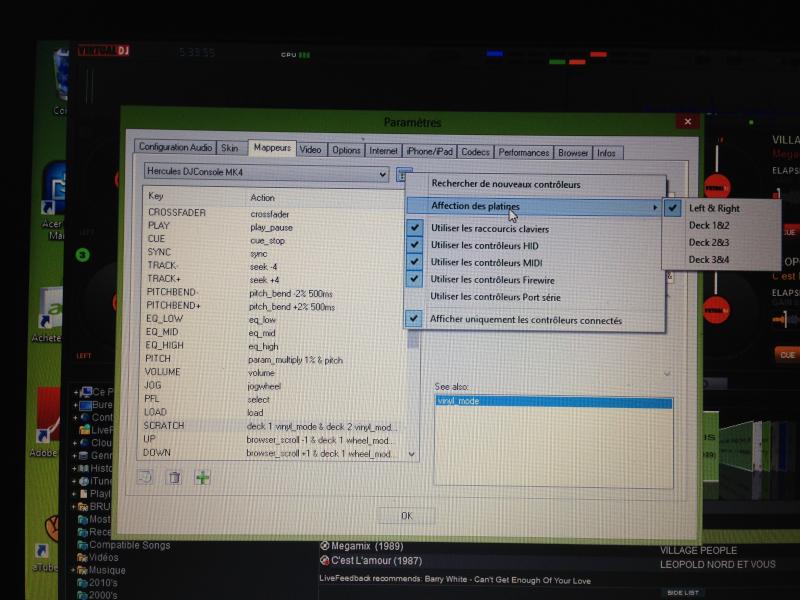 Oui effectivement en mettant sur left & right ça résoud le problème et ça charge bien les chansons sur chaque platine individuellement. Mais là c'est encore pire car la touche play de la console MK4 ne fonctionne plus et la touche scratch ne se désactive plus. donc tu ne peux plus lire les fichiers avec la console. Putain je ne m'en sors pas de ce problème!!!!!! et Samedi je fais une presta Dj, j'suis dans la merde.