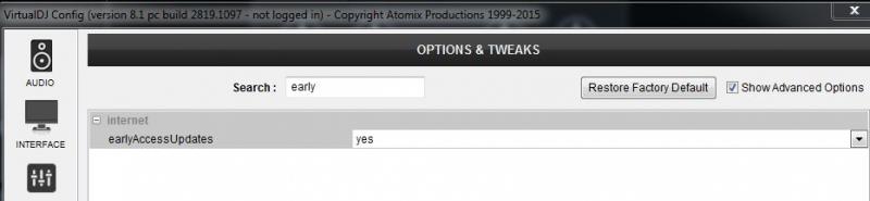 Options (advanced) earlyAccessUpdates to no