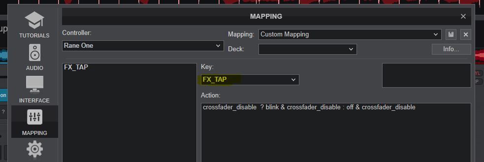 But I'm not getting a blink action, just the toggle working properly. Alternatively if I press the FX_TAP button & hold it continuously, the LED will light up brighter. If blink does not work, I would be ok with the LED Being full brightness when crossfader_disable is active.