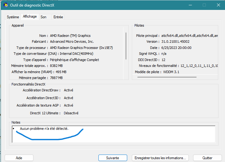 J'ai Windows 11, je vais essayer cette mise à jour de direct X, malgré qu'il ne détecte pas de problème.
