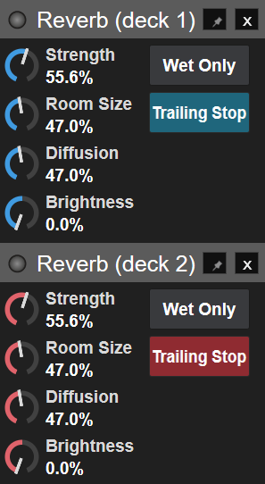 Reverb sounds horrendously hissy with the brightness at 100% and much more what I'm looking for at 0%, is there a way to set the Reverb default brightness to 0% and have it stick across all decks or is this something I will need to do on every launch of VirtualDJ?