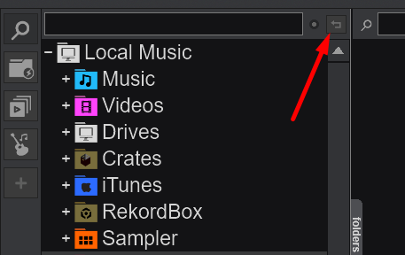 If you have browserPreviousFoldersButton to yes (which you should have if you saw it in vdj2025), then the GO TO LAST FOLDER button will be on the right of the search bar: