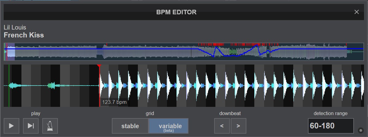 VARIABLE BEATGRID and BPM STABILIZER: A beta preview of our AI-powered variable BPM grid that handles any unsteady or variable BPM tracks, from old rock to disco to warped vinyl or megamixes.