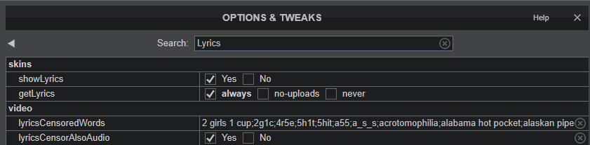 I tried to use a semicolon delimited list in the censored configs for lyrics based on this data: