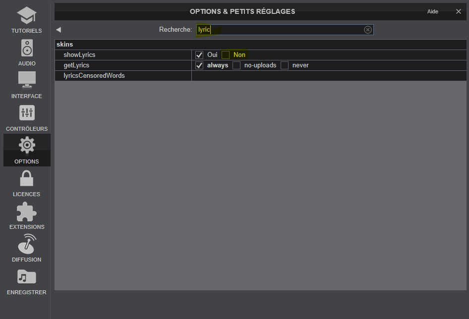 Il est possible de censuré les paroles qui défilent à l'écran, des termes sur le sexe, drogue et autres qui ne passeraient pas dans des soirées :