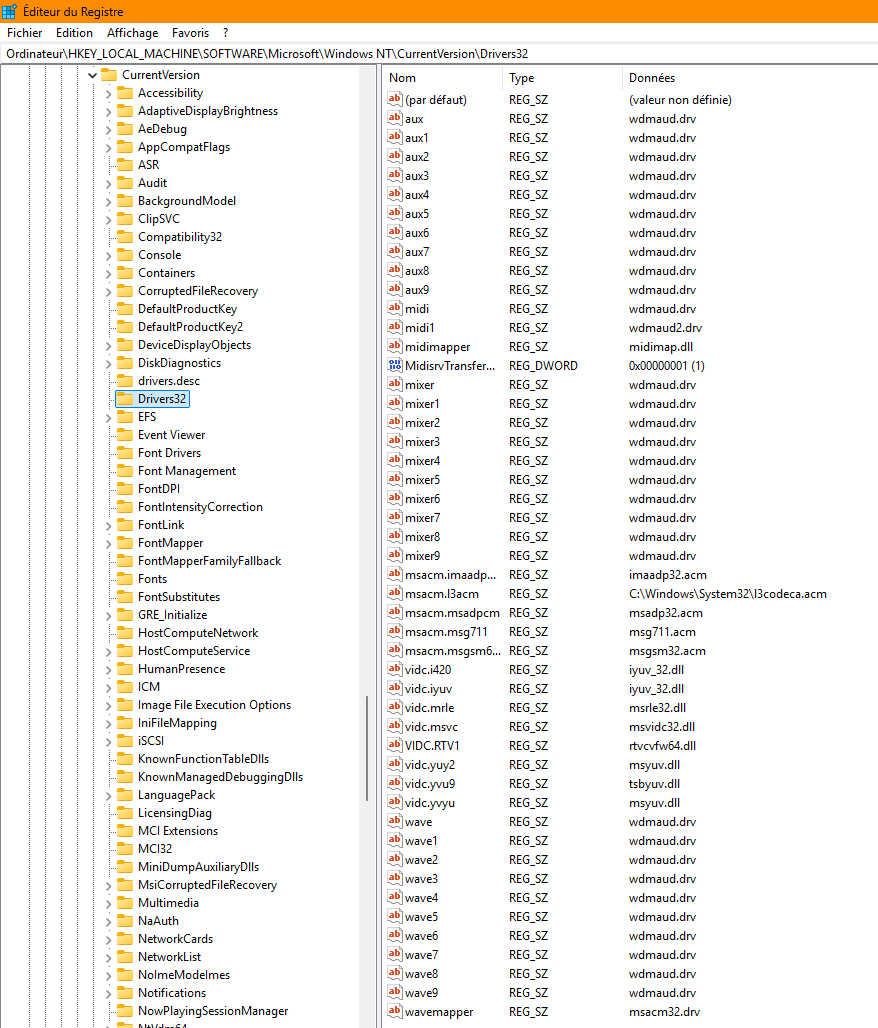 HKEY_LOCAL_MACHINE\SOFTWARE\Microsoft\Windows NT\CurrentVersion\Drivers32