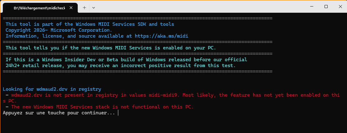 J'en déduis donc que le nouveau service MIDI est actif sur ton Windows d'après ton registre.