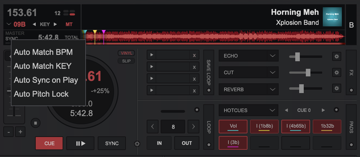 Analyzing the song won't give me anything. Perhaps I will describe exactly what I mean. One deck has, for example, 150.0 BPM and the other track has, for example, 130.0 BPM. Set the second track to 150.0 BPM as soon as possible.