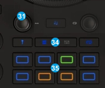 The 8 RGB performance Pads offer different functionality depending on the selected mode and the assigned Pads page. See further details in VirtualDJ Manual - Pads