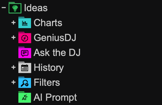 The Folder List offers all of the basic drive and folder elements of your Computer, some dedicated VirtualDJ folders, along with some popular 3rd party software folders. The main folders are compressed for better organization by default. Clicking on the button to the left of any folder will expand it and show it's related sub-folders.